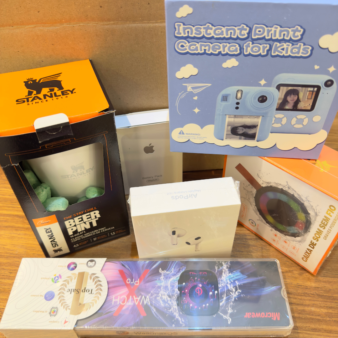 Entre os itens que podem aparecer nas caixas, temos produtos da maça. No entanto, vale ressaltar que esses itens são produtos premium de alguns produtos da marca. Fones de ouvido, relógios e carregadores por indução da maça estão entre os produtos que você pode receber. Essas produtos são de alta qualidade, projetadas para oferecer uma experiência bastante semelhante aos modelos genuínos da maça, com design e funcionalidade extremamente fiéis. Porém, não se trata de produtos genuínos da maça, mas sim de produtos premium, com ótimo custo-benefício, para quem busca qualidade e um preço mais acessível.
